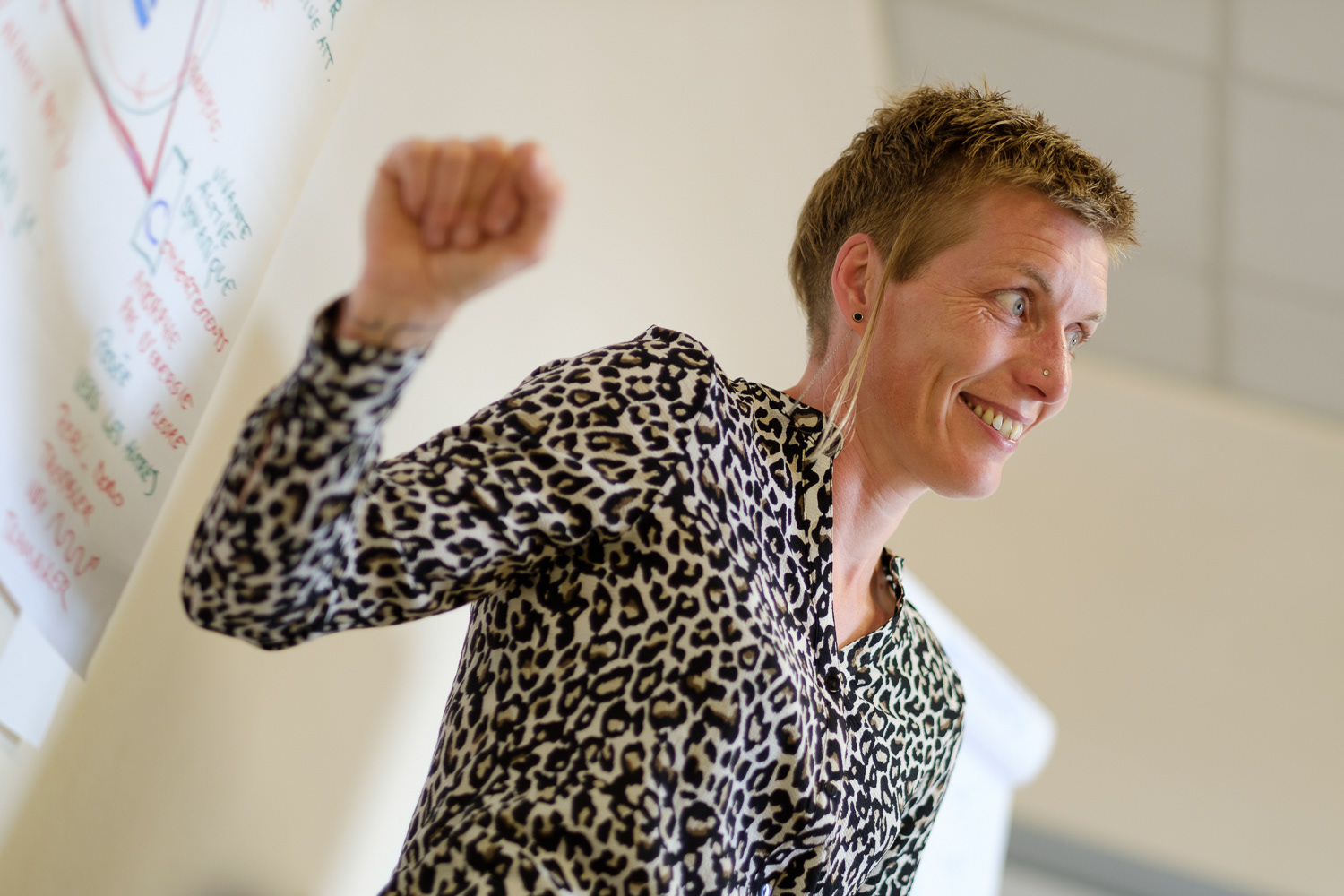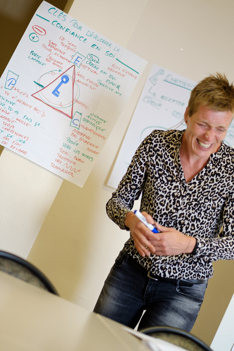 Quelques images de Martine Rensonnet lors d'une formation donnée dans le cadre de ses activités au sein de Sémentiel. Même en ces moments plus studieux, l'enthousiasme et l'humour demeurent.